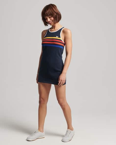 Granatowa mini sukienka z okrągłym dekoltem i bez rękawów. Idealna na wieczorową kolację lub imprezę. Wykonana z wygodnego i elastycznego materiału, dopasowuje się do sylwetki. Dodaj do niej eleganckie dodatki i będziesz wyglądać zjawiskowo!
