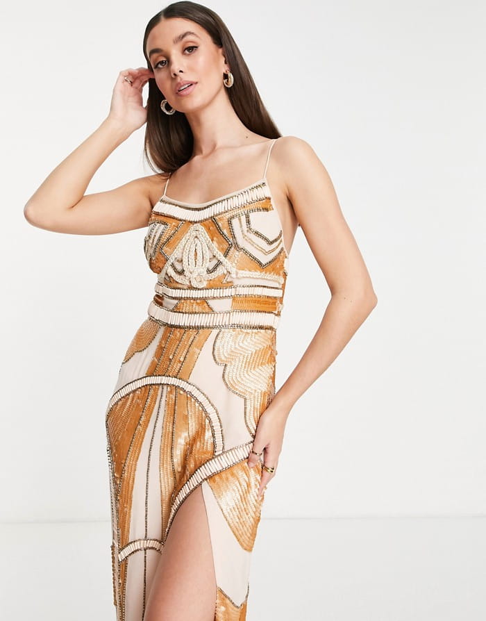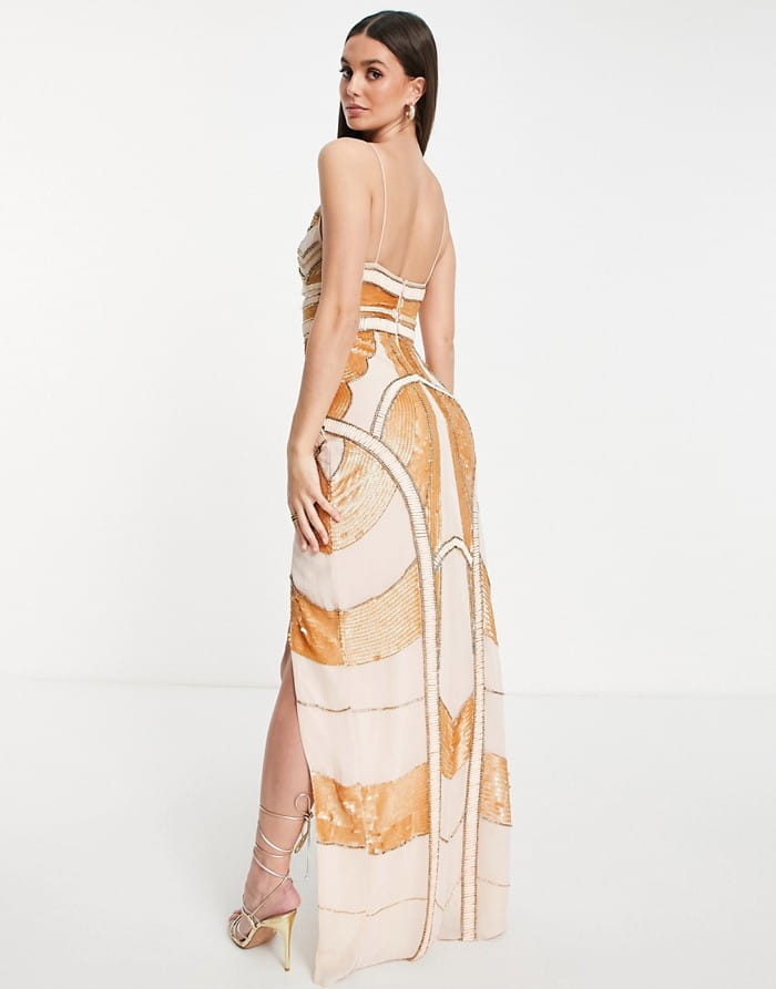 Zdobiona sukienka maxi rozcięcie (34)
