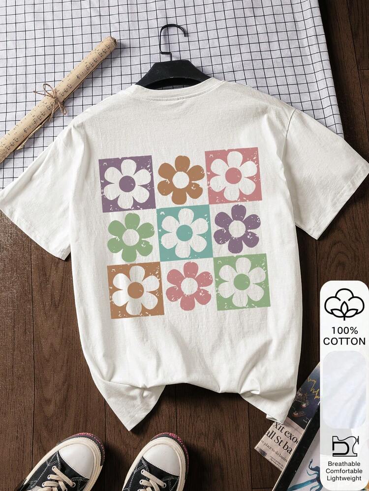 Biały bawełniany t-shirt nadruk (XL)
