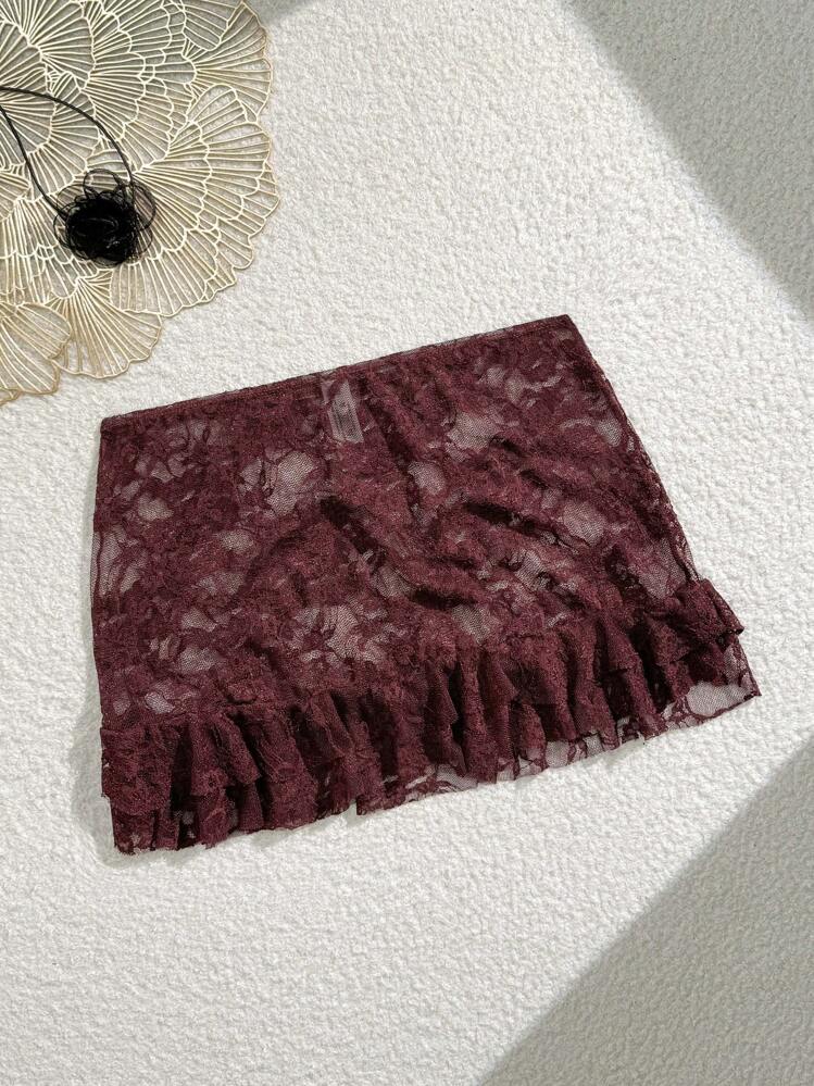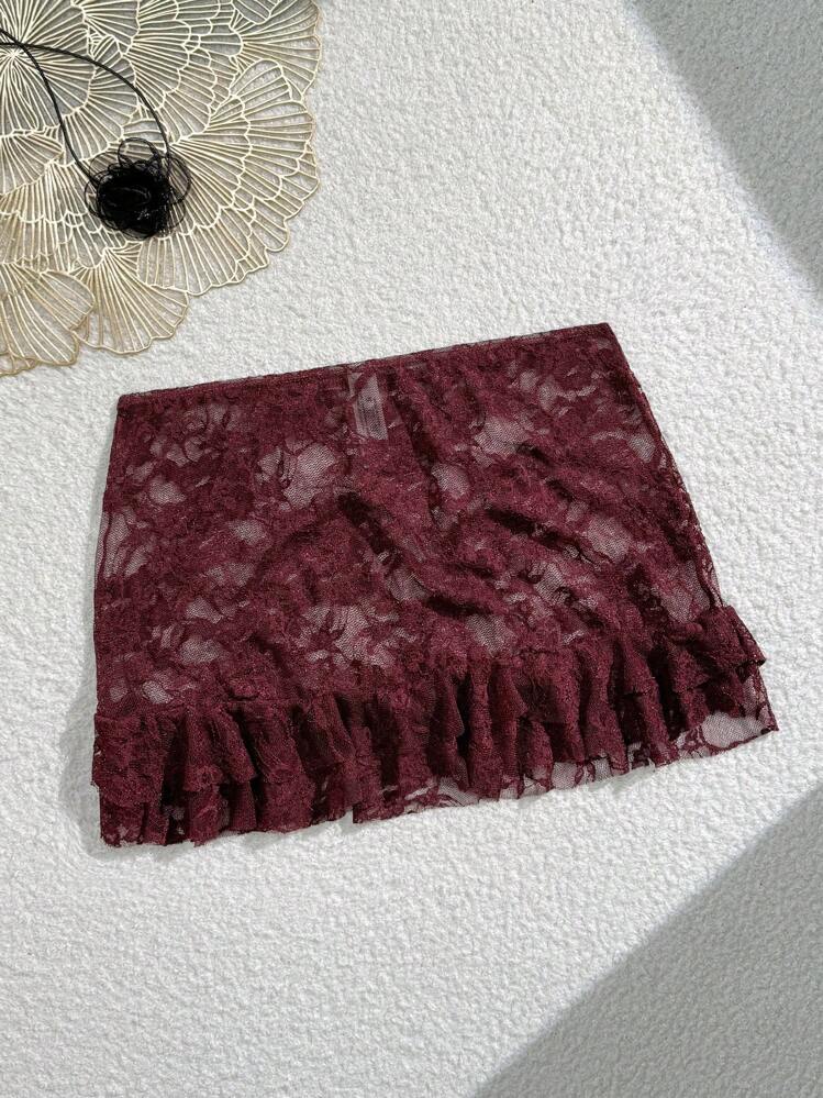 Burgundowa koronkowa spódnica kąpielowa (S)