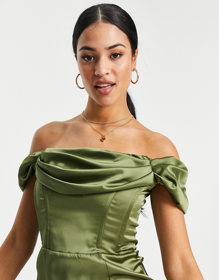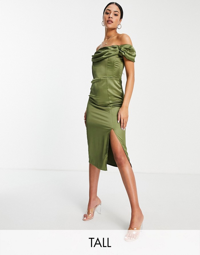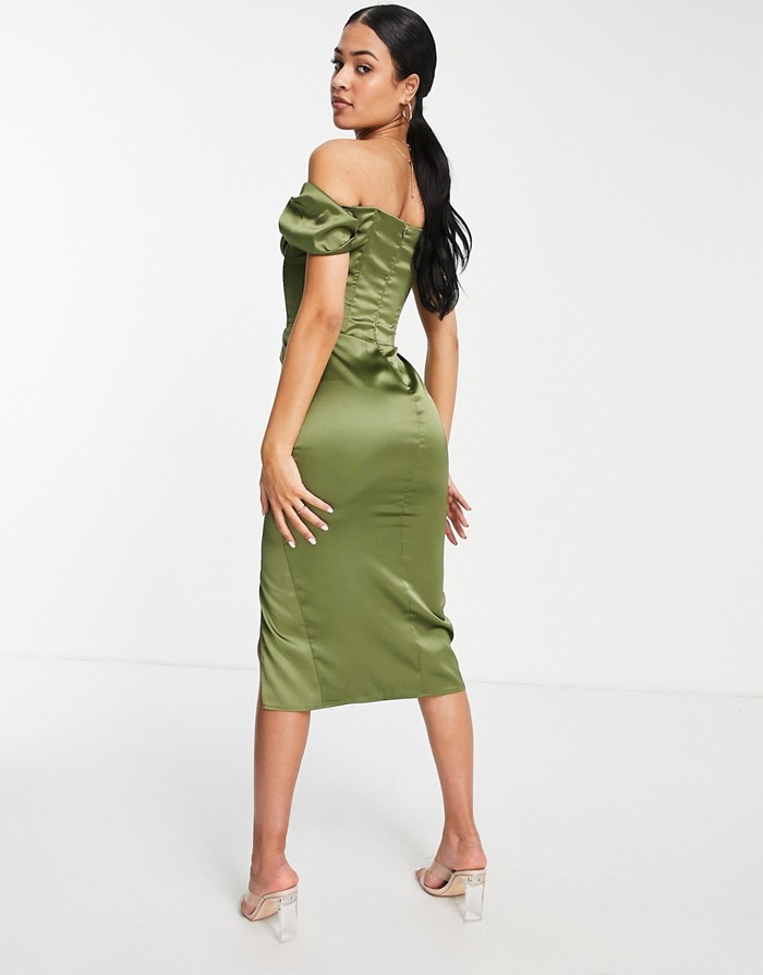 Oliwkowa suknia midi (38)