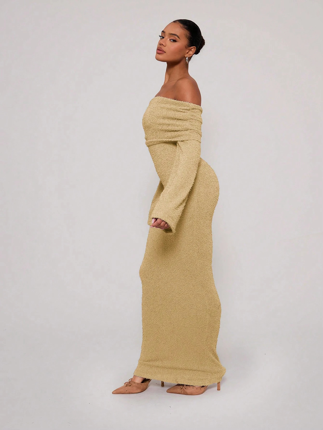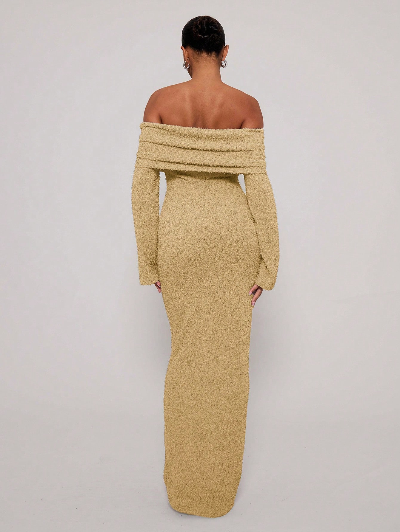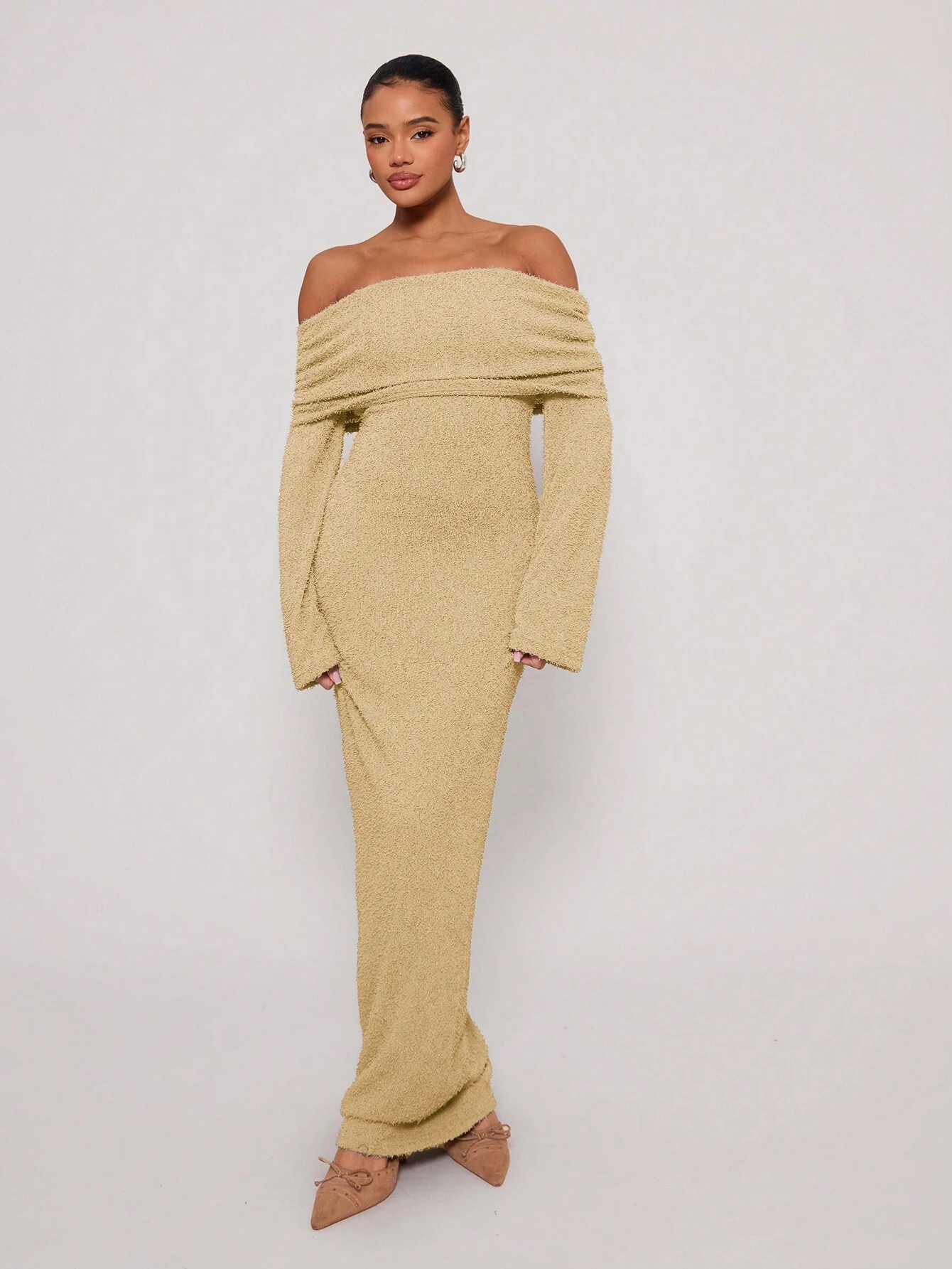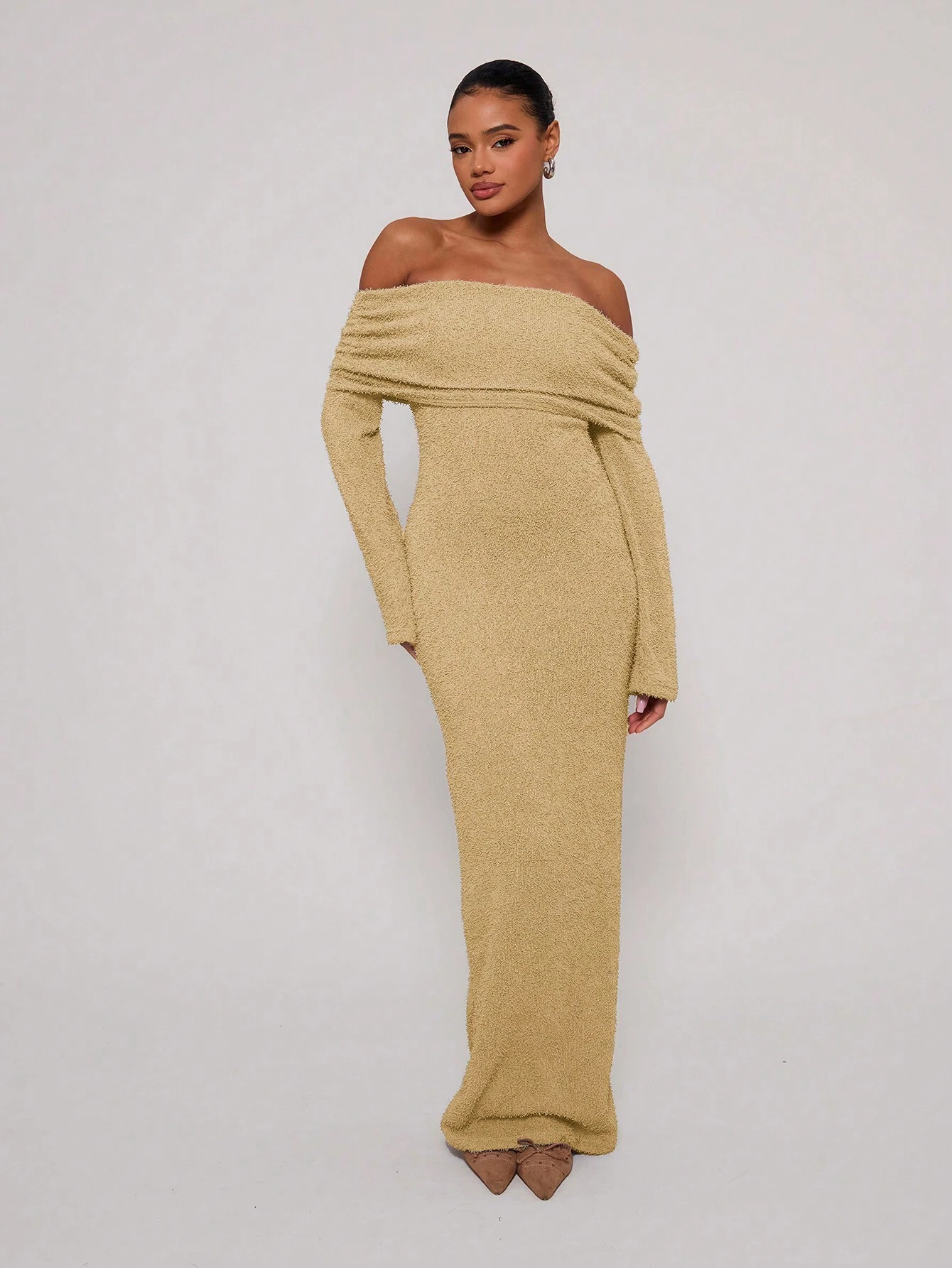 Elegancka beżowa sukienka z odkrytymi ramionami, idealna do noszenia na wiele okazji. Długi rękaw dodaje jej klasy, a kolor beżowy jest ponadczasowy i pasuje do wielu stylizacji. Wybierz ją, aby poczuć się wyjątkowo.