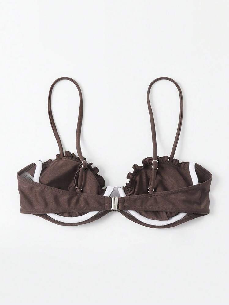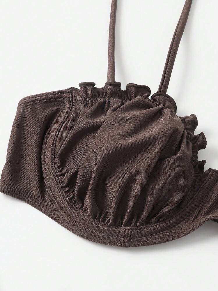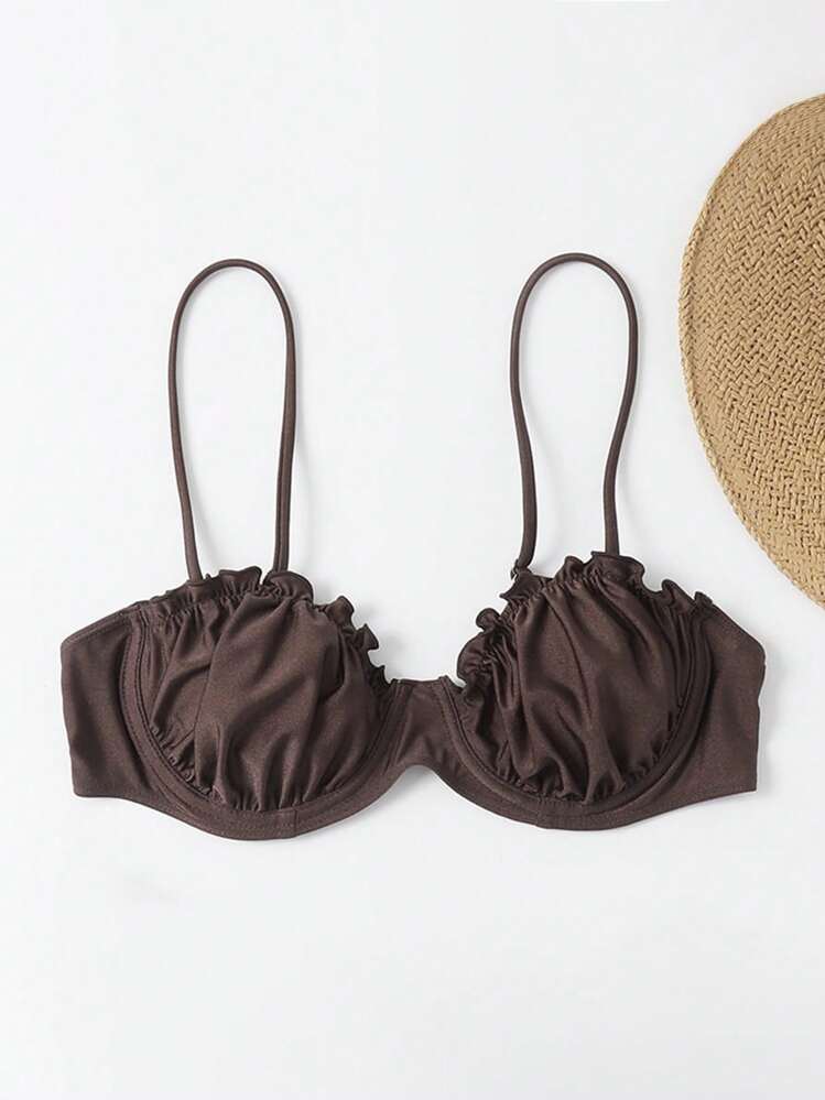 Brązowy marszczony biustonosz kąpielowy (S)