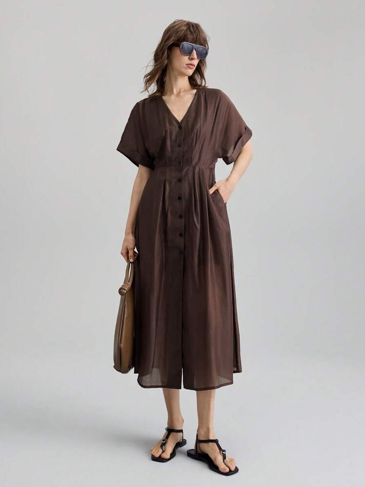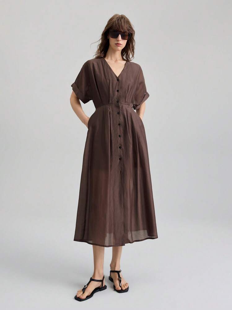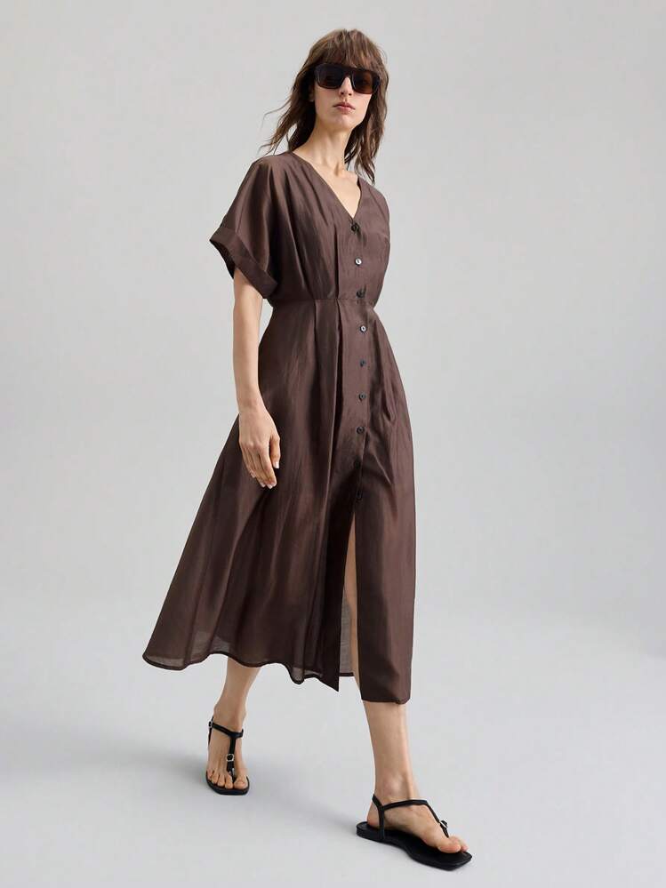 Brązowa sukienka krótkie rękawy (M)