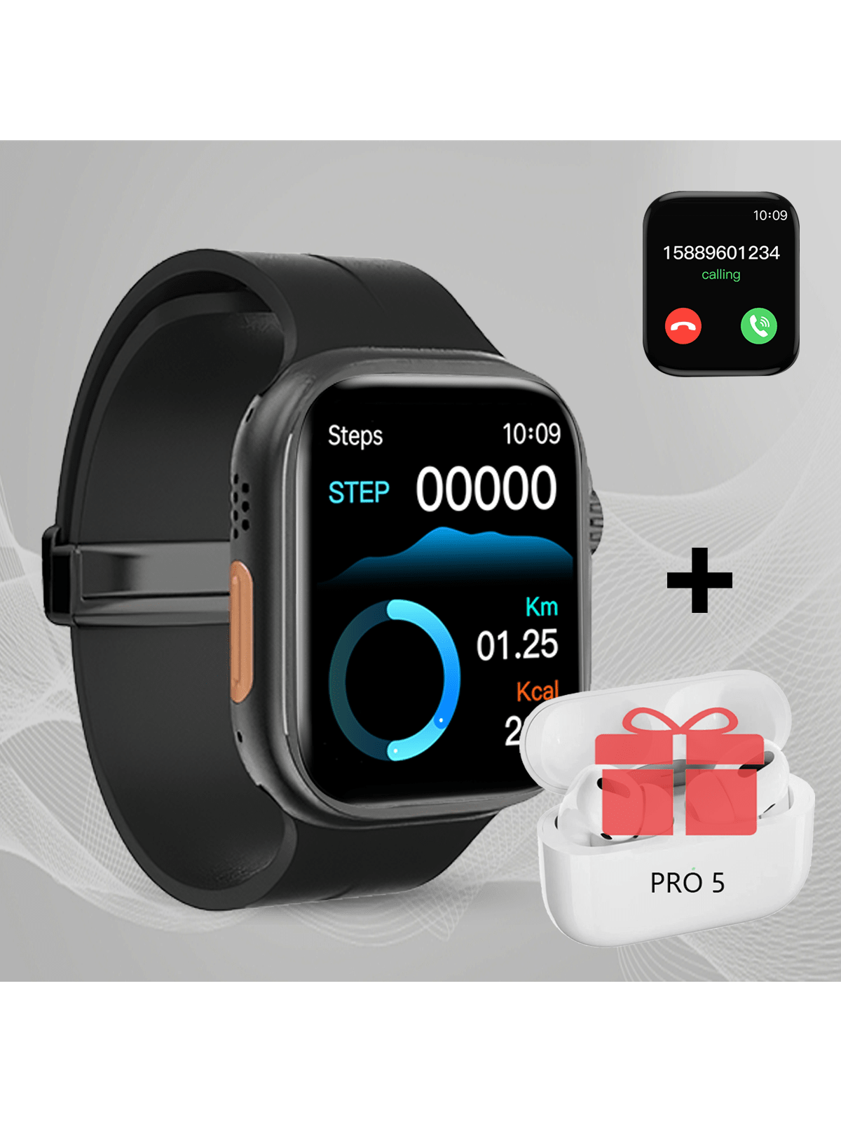 Czarny smartwatch słuchawki zestaw