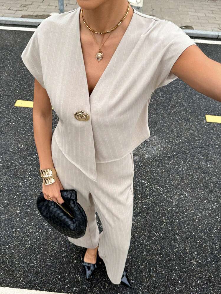 Beżowy elegancki komplet paski (M)