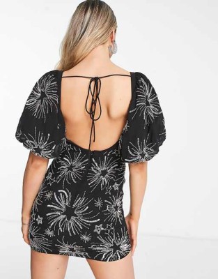 Czarna zdobiona sukienka mini (36) Czarna zdobiona sukienka mini (36)
