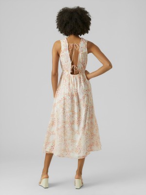 Beżowa sukienka midi wzór (40) Beżowa sukienka midi wzór (40)