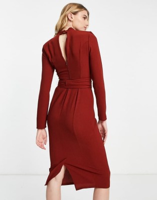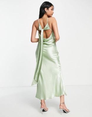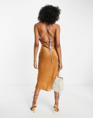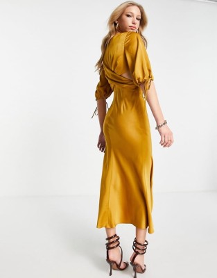 Satynowa midi sukienka wiązanie (40) Satynowa midi sukienka wiązanie (40)
