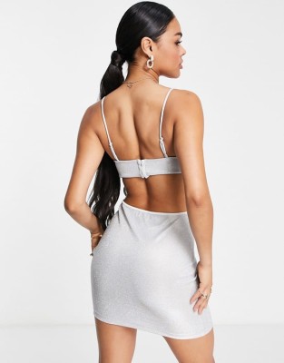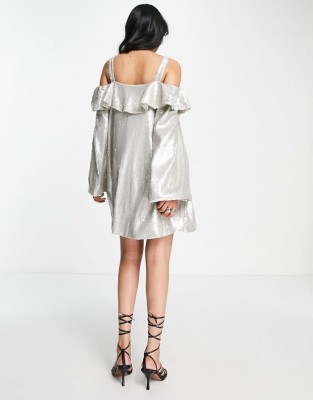 Srebrna mieniąca mini sukienka  (36) Srebrna mieniąca mini sukienka (36)