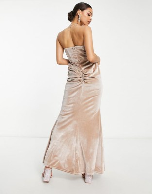 Aksamitna beżowa sukienka maxi (44) Aksamitna beżowa sukienka maxi (44)