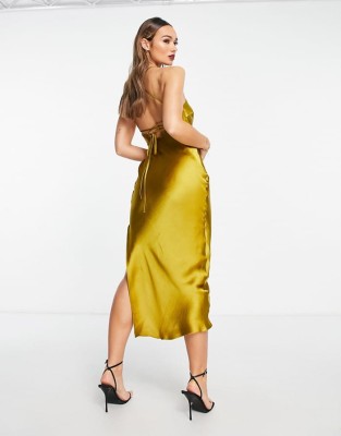 Oliwkowa satynowa sukienka midi (36) Oliwkowa satynowa sukienka midi (36)