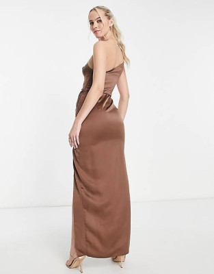 Brązowa satynowa sukienka maxi (40) Brązowa satynowa sukienka maxi (40)