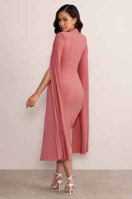 Różowa sukienka midi marszczenia (38) Różowa sukienka midi marszczenia (38)