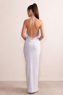 Srebrna sukienka maxi wiązanie (40) Srebrna sukienka maxi wiązanie (40)