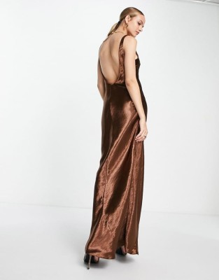 Satynowa brązowa sukienka maxi (44) Satynowa brązowa sukienka maxi (44)