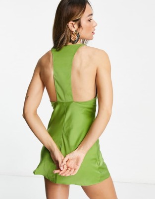 Zielona satynowa sukienka v neck (40) Zielona satynowa sukienka v neck (40)