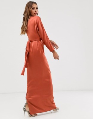 Satynowa sukienka maxi wiązanie (42) Satynowa sukienka maxi wiązanie (42)