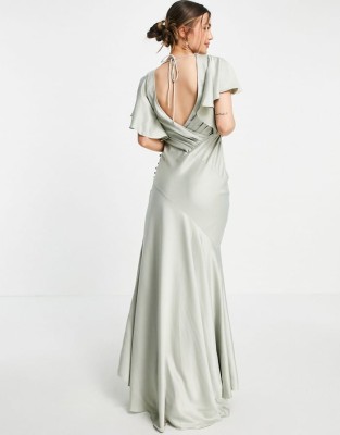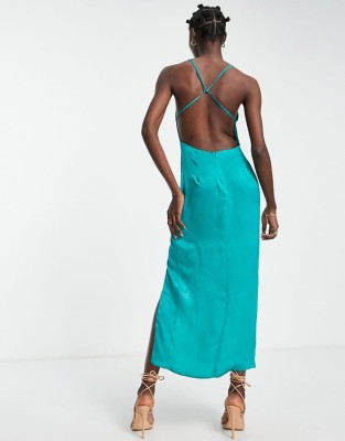 Satynowa oliwkowa sukienka maxi (38) Satynowa oliwkowa sukienka maxi (38)