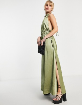 Satynowa sukienka maxi wiązanie (38) Satynowa sukienka maxi wiązanie (38)