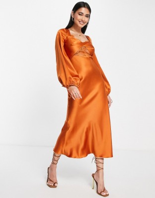 Rdzawa satynowa sukienka midi (34) Rdzawa satynowa sukienka midi (34)