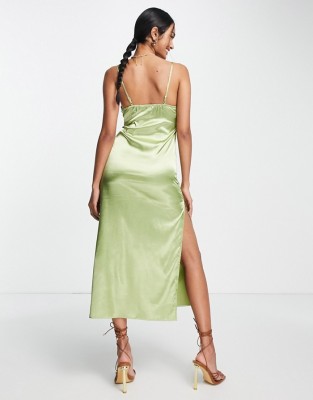 Zielona satynowa sukienka midi (42) Zielona satynowa sukienka midi (42)