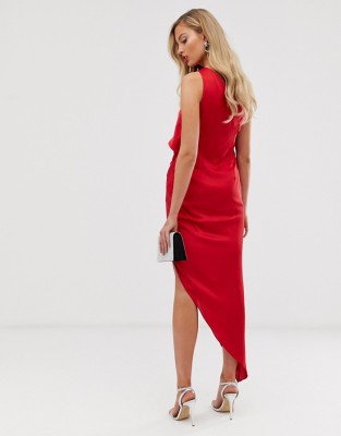 Czerwona satynowa sukienka midi (40) Czerwona satynowa sukienka midi (40)