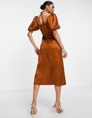 BRĄZOWA SUKIENKA SATYNOWA MIDI (38) BRĄZOWA SUKIENKA SATYNOWA MIDI (38)