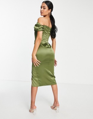 Oliwkowa suknia midi (38) Oliwkowa suknia midi (38)