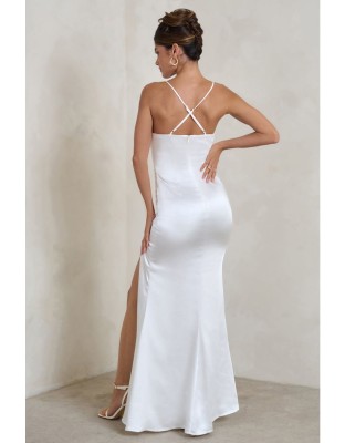 Biała satynowa sukienka maxi rozcięcie (40) Biała satynowa sukienka maxi rozcięcie (40)