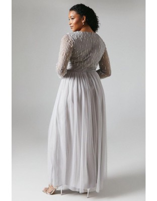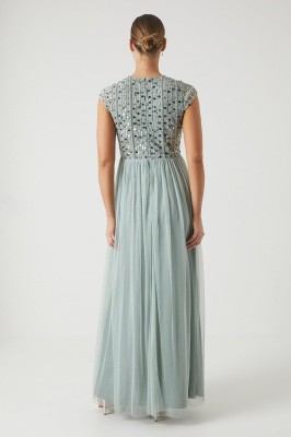 Szara sukienka maxi zdobiona góra (40) Szara sukienka maxi zdobiona góra (40)