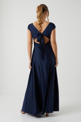 Granatowa satynowa sukienka maxi (38) Granatowa satynowa sukienka maxi (38)