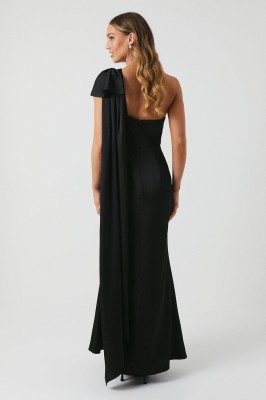 Czarna satynowa sukienka jedno ramię (40) Czarna satynowa sukienka jedno ramię (40)