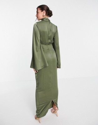 KHAKI SATYNOWA SUKIENKA MAXI (38) KHAKI SATYNOWA SUKIENKA MAXI (38)
