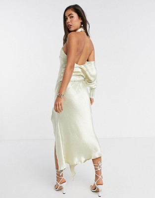 Khaki satynowa sukienka open back (42) Khaki satynowa sukienka open back (42)
