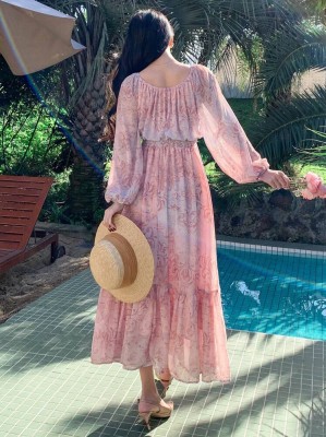 Ecru sukienka maxi wzór (M) Ecru sukienka maxi wzór (M)