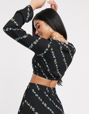 CZARNY KRÓTKI TOP PRINT KWIATOWY (36) CZARNY KRÓTKI TOP PRINT KWIATOWY (36)
