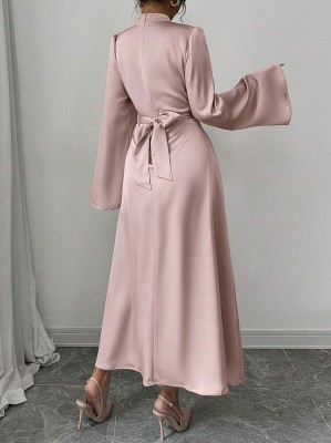 Beżowa sukienka v neck (S) Beżowa sukienka v neck (S)