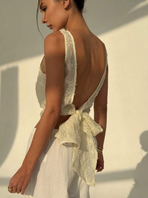 Ecru top hafty wiązanie (M) Ecru top hafty wiązanie (M)
