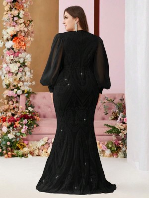 Czarna sukienka maxi cekiny (4XL) Czarna sukienka maxi cekiny (4XL)