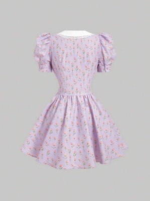 Liliowa sukienka kwiaty (XS) Liliowa sukienka kwiaty (XS)
