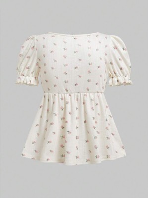 Ecru bluzka wzór kwiaty (L) Ecru bluzka wzór kwiaty (L)