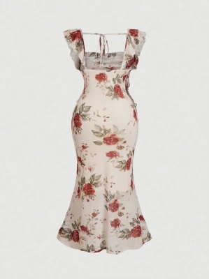 Różowa sukienka midi odkryte ramiona (S) Różowa sukienka midi odkryte ramiona (S)