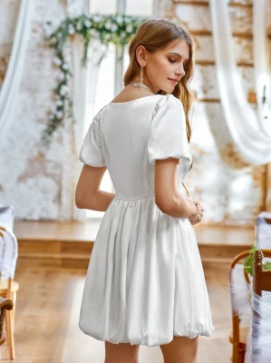 Biała satynowa sukienka bombka (S) Biała satynowa sukienka bombka (S)