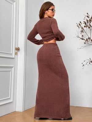 Brązowy dzianinowy komplet (L) Brązowy dzianinowy komplet (L)
