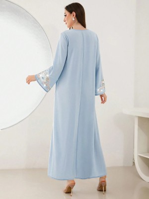 Błękitna prosta sukienka haft (S) Błękitna prosta sukienka haft (S)